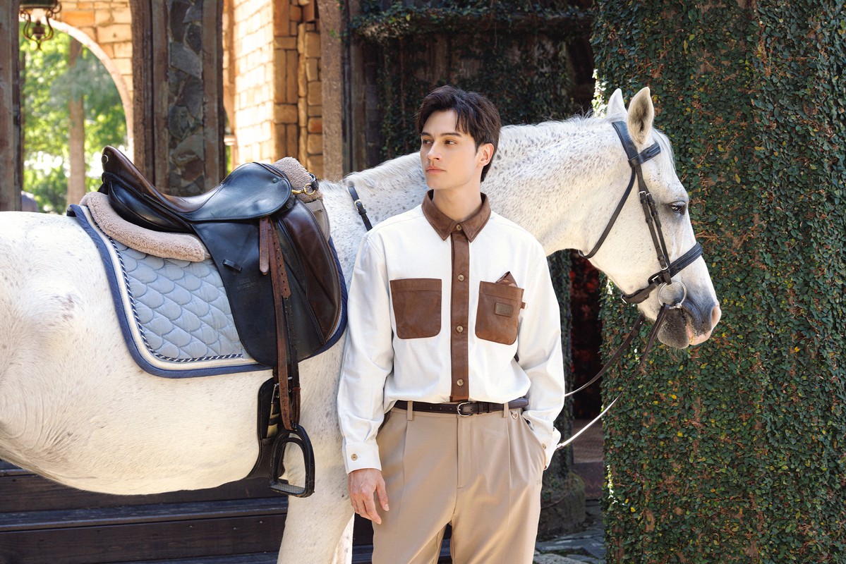 百搭的百駿T 恤以現代染印手法重塑畫作氛圍,並加入金色扣環、口袋等細節點綴,走復古美學路線,直接把藝術變成日常最好搭的潮流單品。想再正式一點,內搭聯名襯衫就是俐落又有品味的選擇——這次襯衫真的下足設計功夫:男款在口袋設計中融入百駿圖的口袋巾巧思;女款除了挺版剪裁與金扣細節,也加入百駿圖 意象的領巾點題。穿上身的優雅與時尚氣場,無論是商務會議或重要場合,都能展現個人質感與品味。