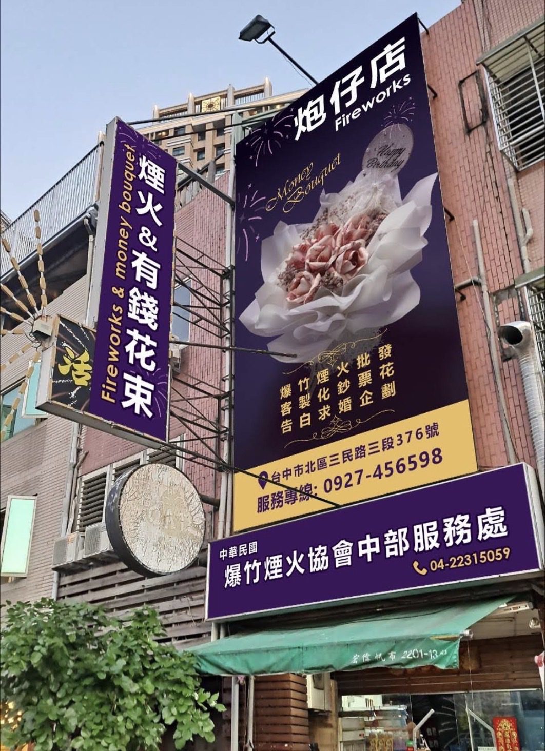 在台中市北區三民路上,一家乍看是煙火專賣的商店,正悄悄改寫台灣送禮產業的遊戲規則。這家名為「炮仔店手作有錢花」的在地品牌,不只販售合法煙火,更靠著可客製化的「現金花束」,成功引爆話題,成為婚禮、開幕與節慶派對的最新「儀式感神器」。