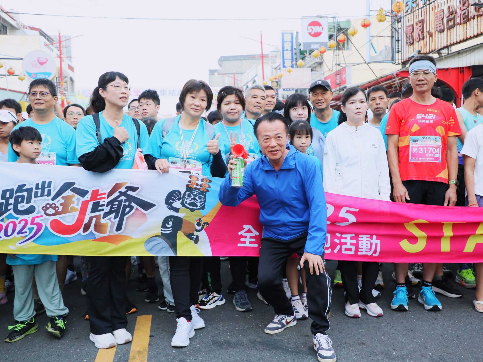嘉義縣新港奉天宮今(23)日舉辦「跑出金虎爺」全國路跑賽,吸引來自全國各地約6000名熱愛跑步的選手參與,現場氣氛熱烈。嘉義縣長翁章梁也親自到場,與民眾一同熱身,並為選手們加油打氣。