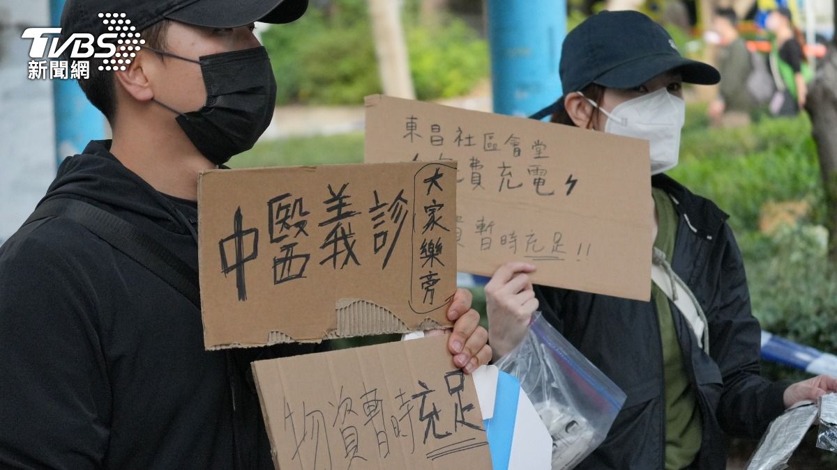大量物資湧入,社福人士在收容所附近設物資站供有需要人士領取。(圖/TVBS)