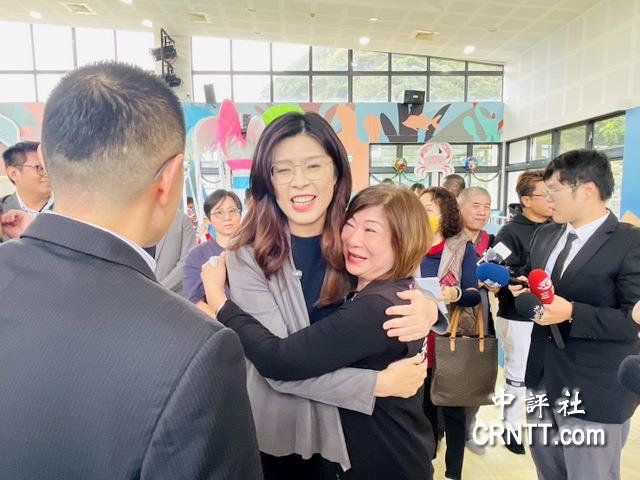 國民黨主席鄭麗文與黨籍基隆市議員宋瑋莉擁抱。(中評社)
