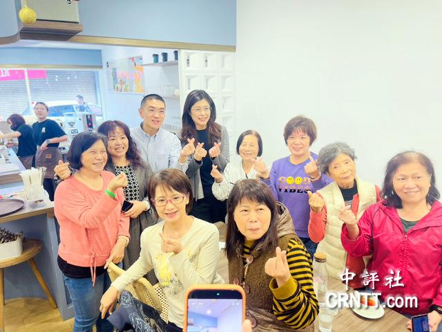 餐廳客人與國民黨主席鄭麗文、基隆市長謝國樑互動合影。(中評社)