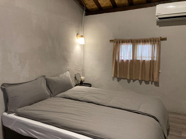 「楊桃墅」是一棟保留古樸元素的合院式老宅,因中庭座落著一棵30多歲的楊桃樹而得名。空間內部設有獨立衛浴套房、雅房及背包房,並配備公用客廳與廚房,保留了非制式且充滿人味的居住尺度。對於入住的旅人而言,這裡最大的特色在於其獨特的「空間氛圍」:白天與夜晚節奏分明,周遭與稻田、社區日常緊密相鄰,讓居住者能真切感受到「住在社區裡,而不是住在景點旁」的生活感。