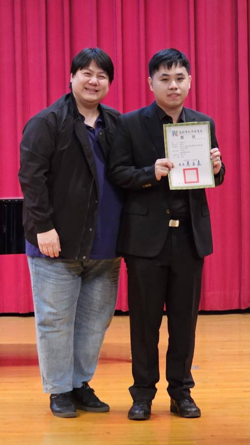 值得一提的是,楊碩宇同學亦為學校的特殊教育學生,自幼便展現出優異的專注力及高度音樂天賦,擅長小提琴及鋼琴。在家人悉心陪伴與學校友善的支持下,他深耕音樂領域多年,並持續透過音樂帶給聽眾無窮的感動與喜悅。此次獲獎,再次印證了潛能無限的信念,證明只要給予適當的環境與支持,每位學生都能在各自擅長的舞台上綻放光芒。