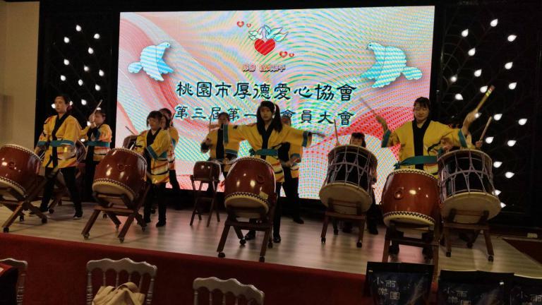 ▲桃園市厚德愛心協會理事長交接儀式中,穿插的心燈教養學院院童的大鼓表演。(圖/記者范文濱攝)