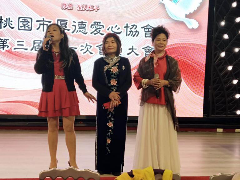 ▲桃園市厚德愛心協會新、卸任理事長交接儀式 :(圖右、創會理市長潘寶釵、(圖中、新任理事長曾秀琴)、(卸任理事長潘瑩珠、圖左)。(圖/記者范文濱攝)