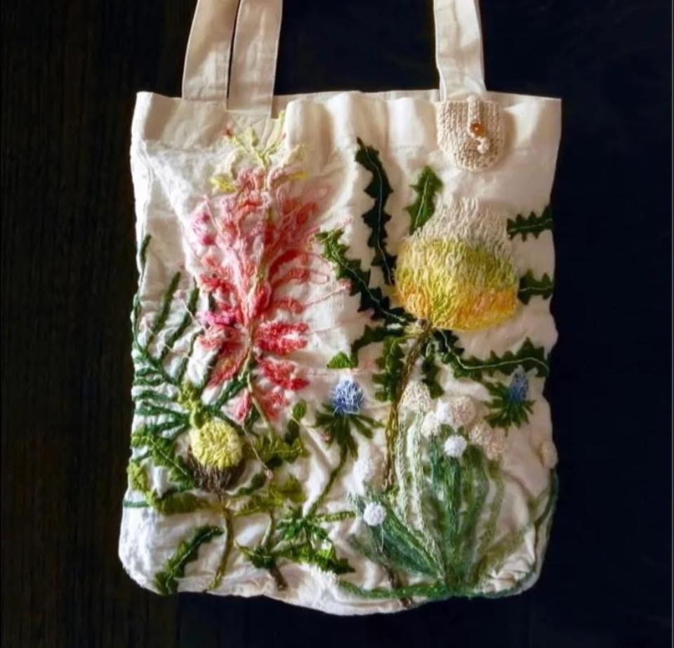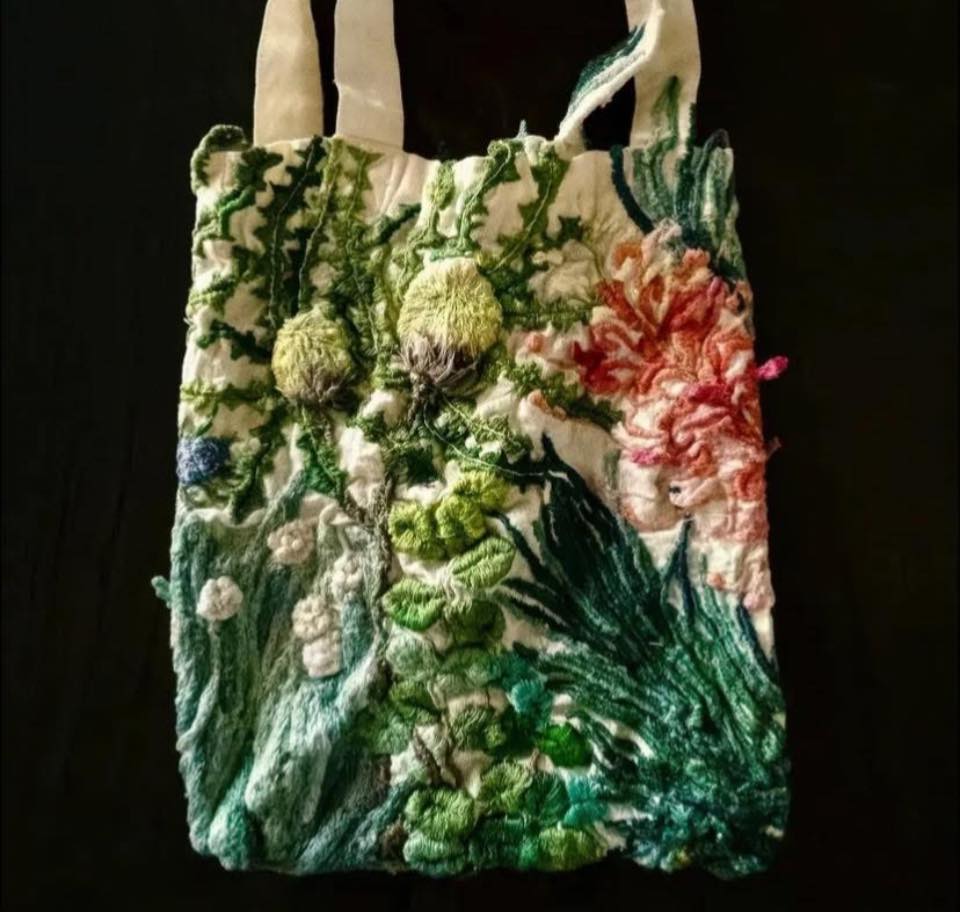 纖維藝術家 Nuimori,以植物為語彙,將刺繡化為一只布袋上的好風景。