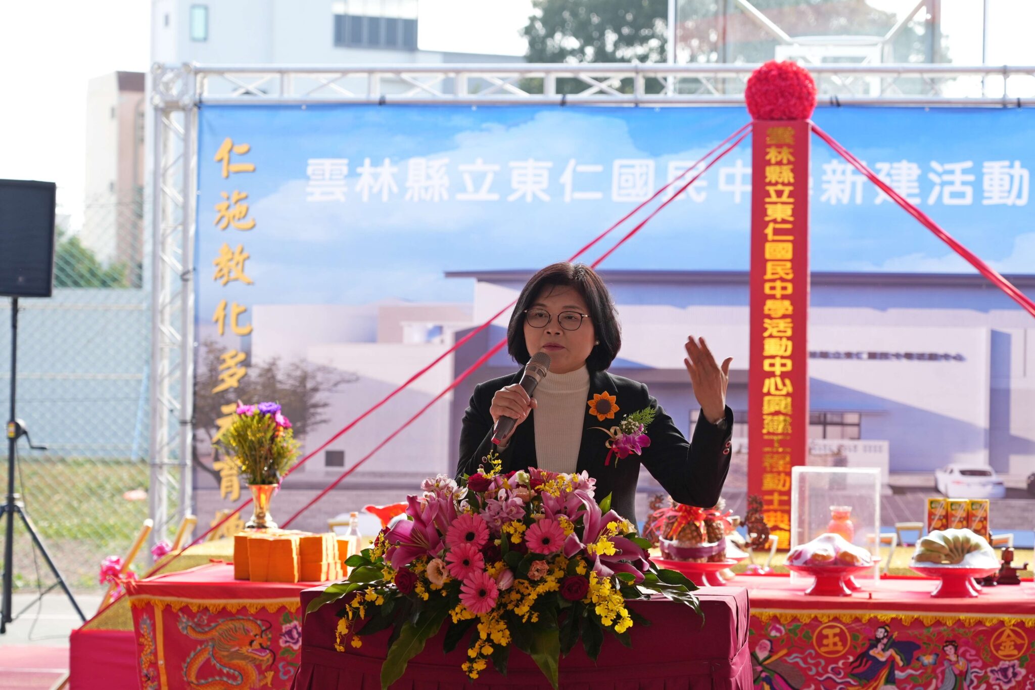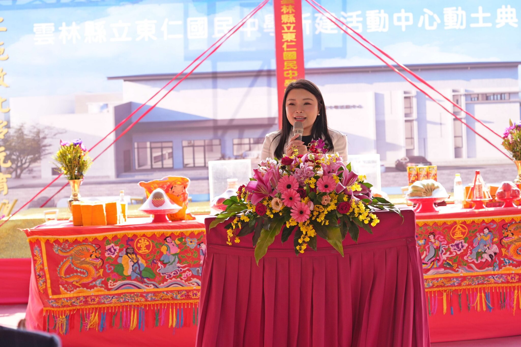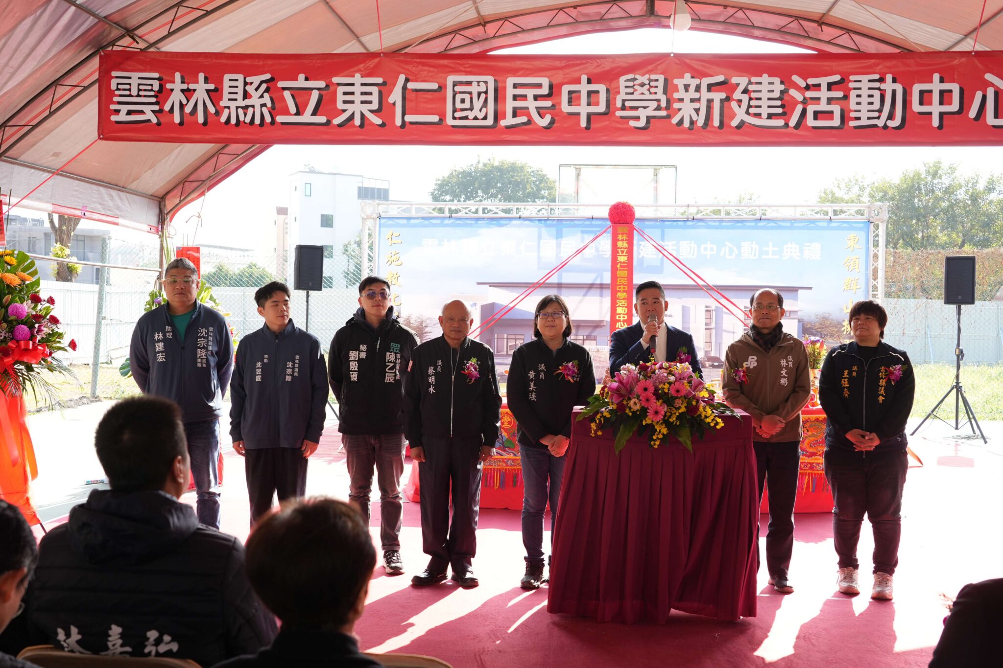 雲林縣虎尾鎮東仁國中今8日舉行新建學生活動中心動土典禮。縣長張麗善表示,學生活動中心預計明年3月完成,終結學校創校近20年沒有活動中心,師生舉辦大型活動需在戶外日曬雨淋窘境。她表示縣府今年已再編列2000萬經費,補足設施內容,力求活動中心功能完善、安全實用。
