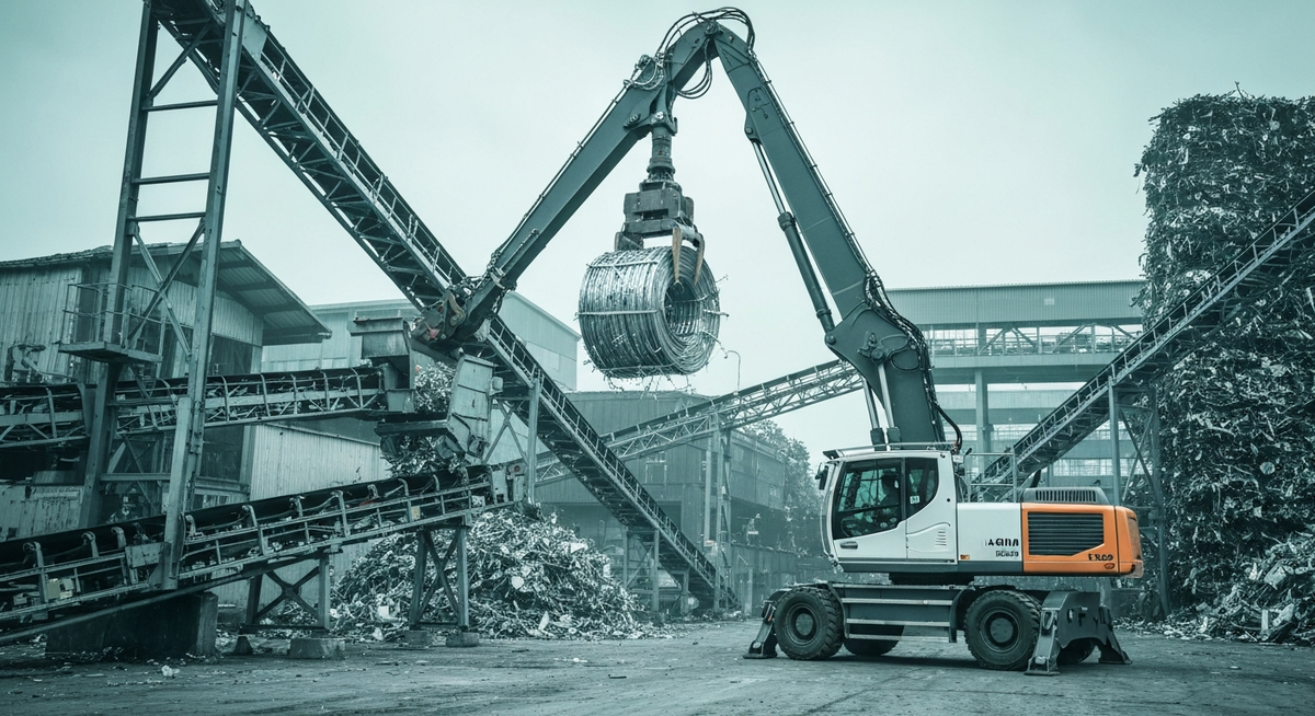 Liebherr 強調,LH 60 M 專為金屬回收作業中所需的重型物料搬運而設計,其 65 英尺的作業範圍配備了該公司獲得專利的 ERC 能量回收系統。