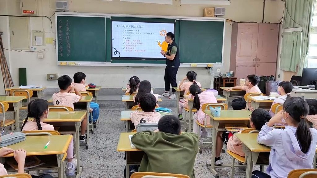 分齡識詐隨堂考!台中刑警走進校園開「防詐學堂」,用笑聲教孩子拆解詐騙。台中市警局第五分局近來推動「分齡識詐」宣導,深入轄內國中、小學,以趣味互動方式強化學生的防詐觀念,讓孩子成為家中的「防詐小種子」。