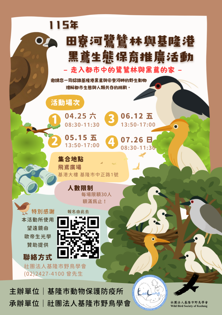 動保所陳柏廷所長表示,田寮河畔的鷺鷥林是罕見的都市型繁殖棲地,自3月至9月期間,會有小白鷺、夜鷺及黃頭鷺,共3種鷺鷥聚集於此,為了讓市民更加理解鷺鷥習性,今年度與基隆市野鳥學會合作,推出4場生態走讀活動,期望透過活動,讓更多市民理解,都市可以與野生動物共存共榮。唯有在日常管理中納入生態思維,並透過教育推廣深化公民參與,才能真正守護這片珍貴的城市綠帶與鳥類家園。