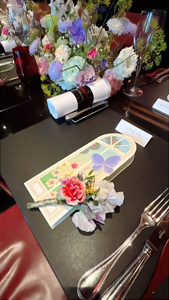 在台北「侯布雄」米其林餐廳深色、帶點戲劇感的空間裡,這些花顯得更脆弱,也更動人。
