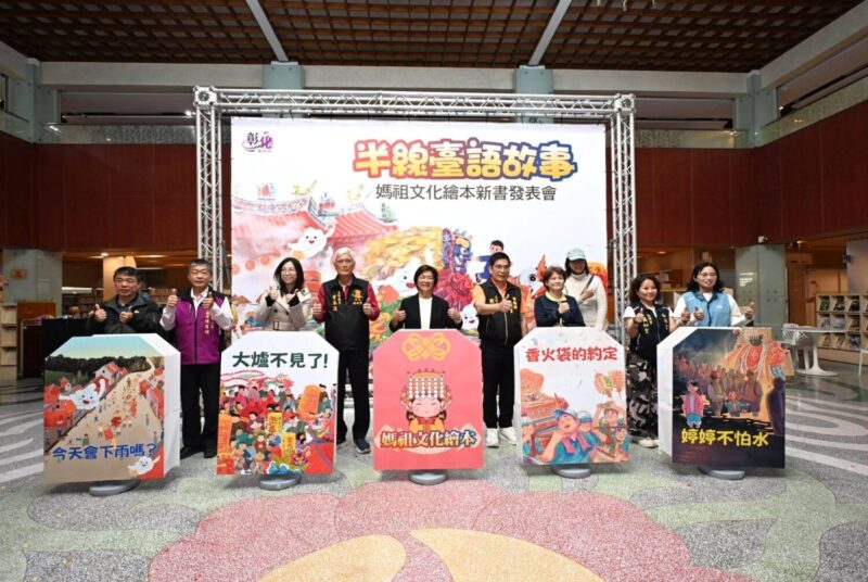 【焦點時報/記者林明佑報導】彰化縣文化局今(20)日在縣立圖書館辦理「半線臺語故事繪本新書發表記者會」,縣長王惠美、繪本作者、繪者及各宮廟主委等人與會。王惠美表示,為讓大眾更認識彰化的「媽祖故事」,特別邀請在地作家與著名插畫家共同創作,以彰化縣無形文化資產的媽祖民俗文化慶典為主題,出版4本精彩繪本。