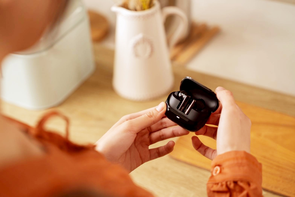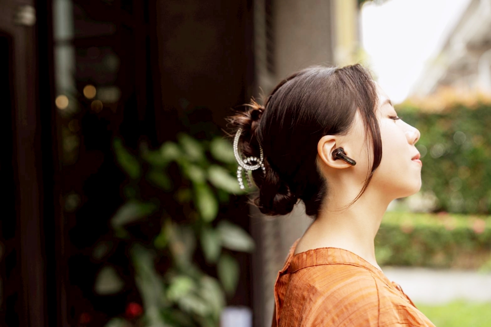 戴上耳機的瞬間,光學感應自動開啟降噪功能,將世界的喧囂隔絕在外。六麥克風配置搭配AI降噪晶片,能過濾最高-42dB的環境噪音,為使用者營造出如真空般的純淨聆聽空間!而「通透模式」則讓音樂與環境聲共存,在專注與安全之間取得完美平衡。