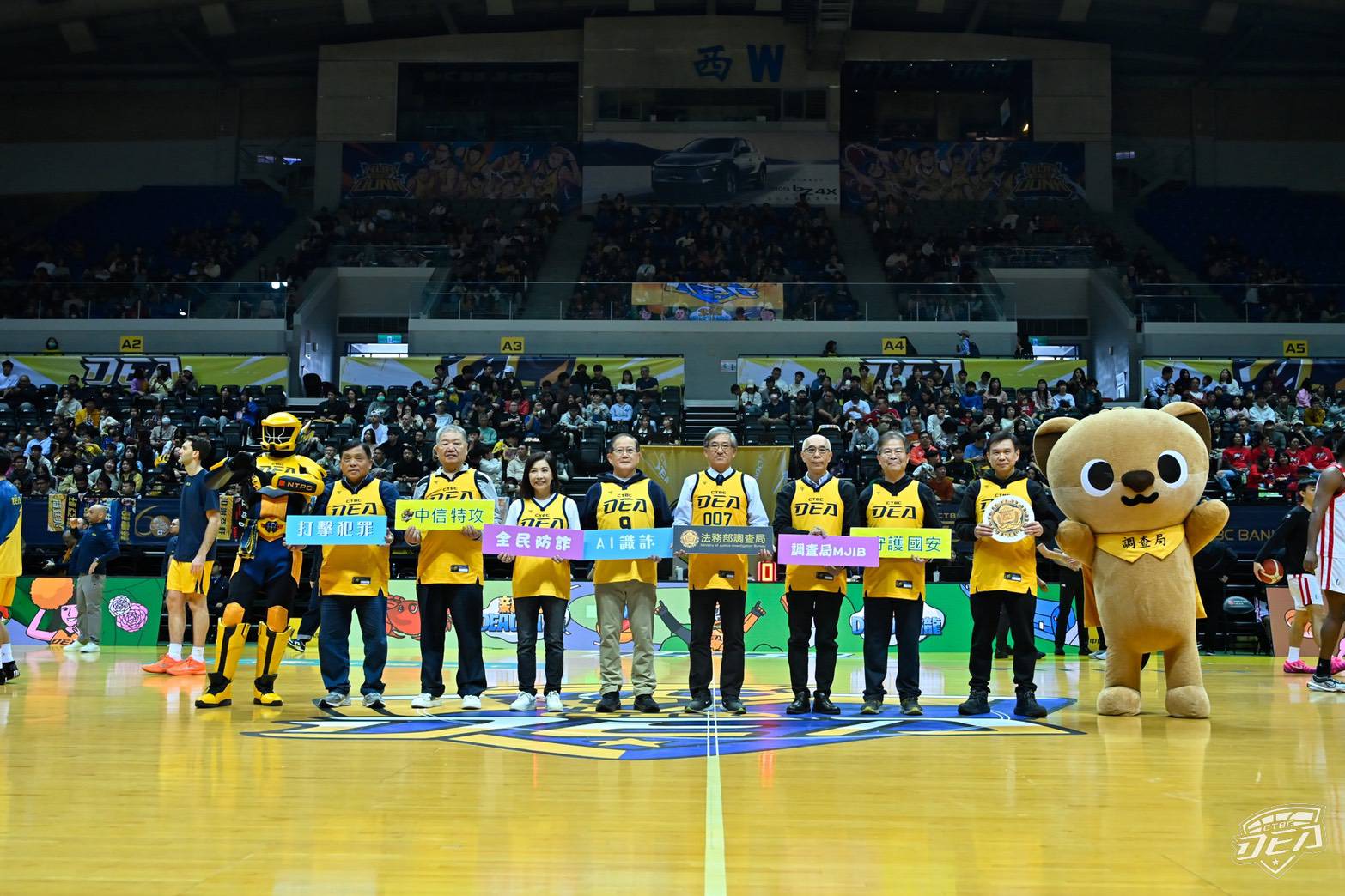 台灣詐騙猖獗,受害民眾苦不堪言,調查局除了賽前播放宣導影片,加上今日在新莊體育館設立宣導攤位,以精美的禮物吸引民眾進行有獎徵答、臉書互動,藉此傳遞防詐及反毒知識。另外,調查局的Q版吉祥物黃喉貂「查查」也在現場手舞足蹈地介紹調查局工作內容,希望延攬新血加入調查局的行列。中信特攻於新莊體育館打造「衝電樂園」,更於本週末舉行「新北DeaDea攏」主題週,邀請球迷朋友來一場新北的美食與文化之旅,加上「查查」在現場與小球迷熱情互動,寓教於樂,非常適合闔家進場同樂。