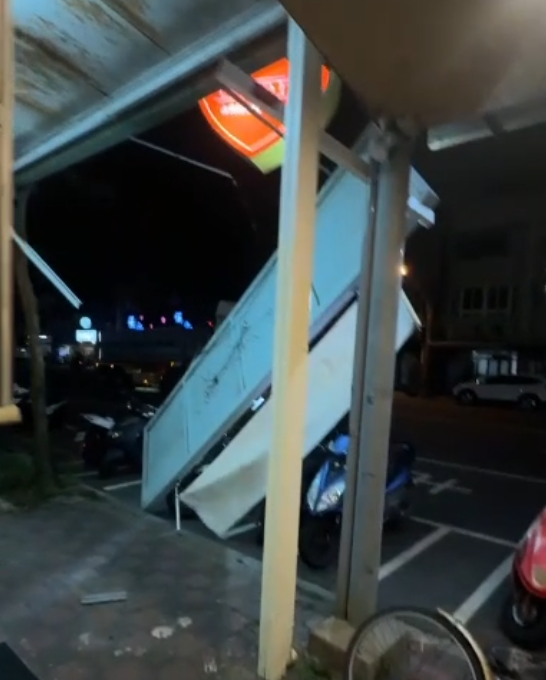 台中梧棲颳強風吹倒飲料店招牌。翻攝畫面
