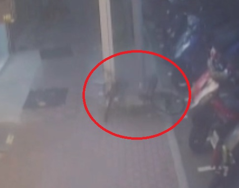 騎樓下的腳踏車被強風吹倒(紅圈處)。翻攝畫面