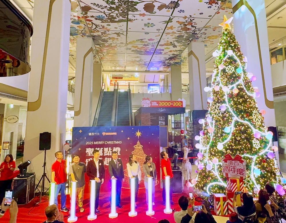 7米高聖誕樹夢幻登場!竹北遠百週年慶熱鬧開跑 同步啟動「一募一鞋傳千里」聖誕公益活動
