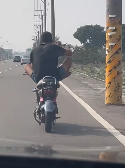 【Lai傳媒、記者爆料網/林千允/綜合報導】彰化最近出現一段超誇張街頭畫面,在社群平台一路延燒。有民眾經過150縣道原斗路段時,赫然目睹一名男子把「用路時間」逼到極限:腳掌夾電動車龍頭、手拿著麵大口吃,還悠哉滑手機……完全無視車流、旁若無人,旁車駕駛驚到狂喊:「這是在表演特技嗎?!」